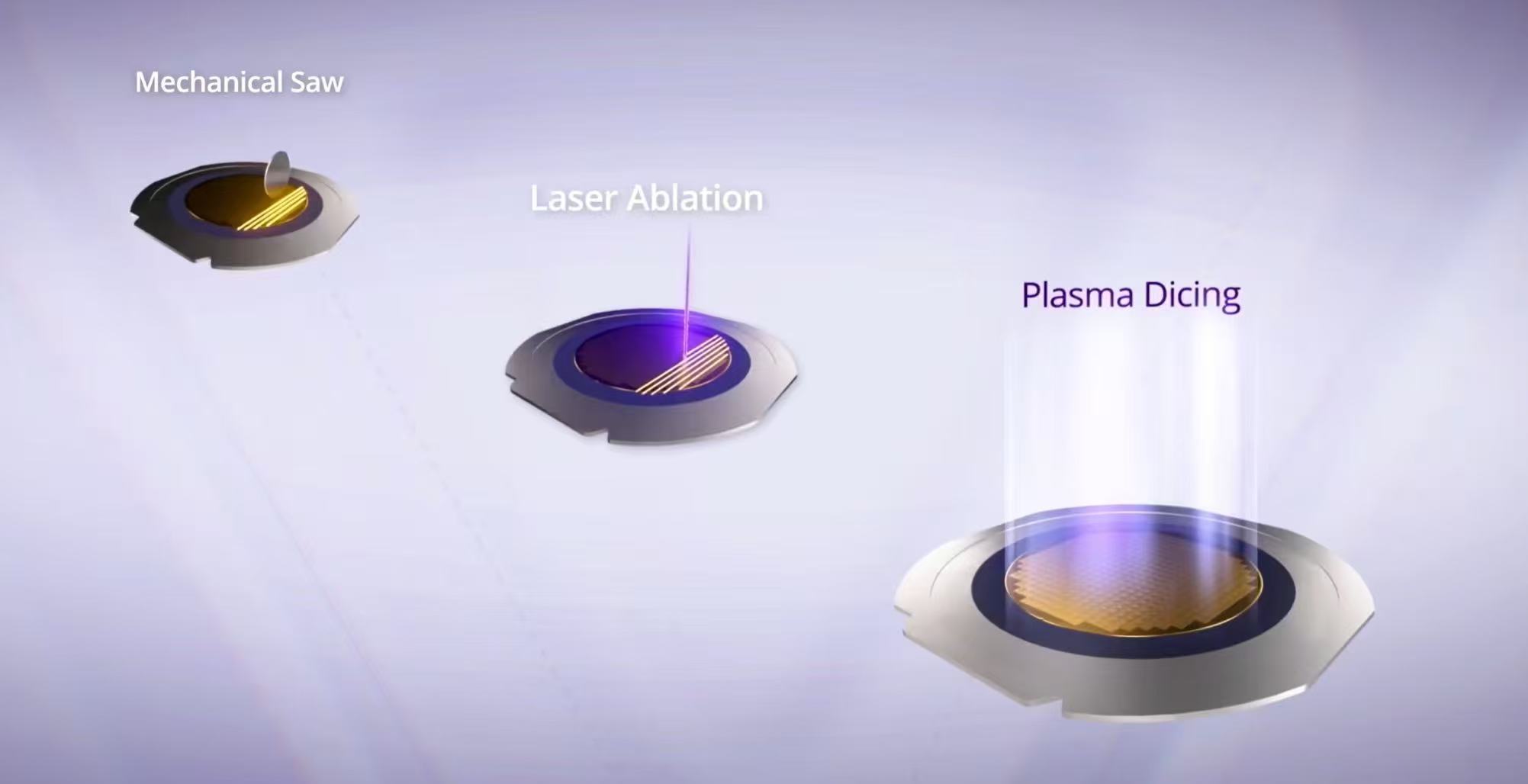 Ang Wafer dicing ay ang pangwakas na hakbang sa proseso ng pagmamanupaktura ng semiconductor, na naghihiwalay sa mga wafer ng silikon sa mga indibidwal na chips (tinatawag ding namatay). Ang mga tradisyunal na pamamaraan ay gumagamit ng mga blades ng brilyante o laser upang i -cut kasama ang mga dicing na kalye sa pagitan ng mga chips, na naghihiwalay sa mga ito mula sa wafer. Ang plasma dicing ay gumagamit ng isang dry etching na proseso upang maiiwasan ang materyal sa mga dicing na kalye sa pamamagitan ng fluorine plasma upang makamit ang epekto ng paghihiwalay. Sa pagsulong ng teknolohiya ng semiconductor, ang merkado ay lalong humihingi ng mas maliit, mas payat, at mas kumplikadong mga chips. Ang plasma dicing ay unti -unting pinapalitan ang tradisyonal na mga blades ng brilyante at mga solusyon sa laser dahil maaari itong mapabuti ang ani, kapasidad ng paggawa, at kakayahang umangkop sa disenyo, na naging unang pagpipilian ng industriya ng semiconductor.