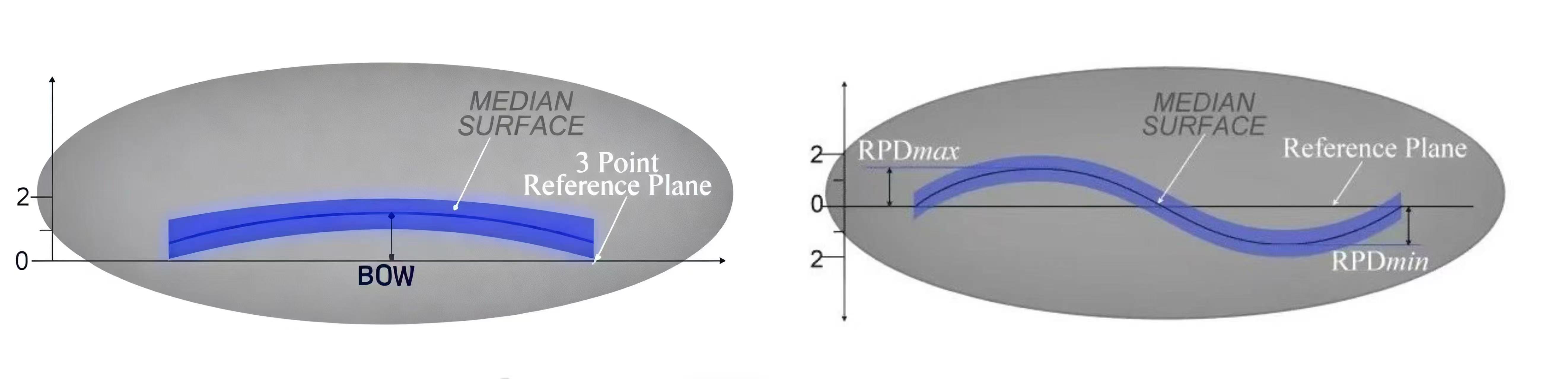 Ang tagapagpahiwatig ng bow ay nakatuon sa vertical offset ng lugar ng Wafer Center, na sumasalamin lamang sa lokal na estado ng baluktot. Ito ay angkop para sa pagsusuri ng mga senaryo na sensitibo sa lokal na flatness. Ang tagapagpahiwatig ng warp ay kapaki -pakinabang para sa pagtatasa ng pangkalahatang flatness at pagbaluktot dahil isinasaalang -alang nito ang paglihis ng buong ibabaw ng wafer at nagbibigay ng impormasyon sa pangkalahatang flatness para sa buong wafer.
