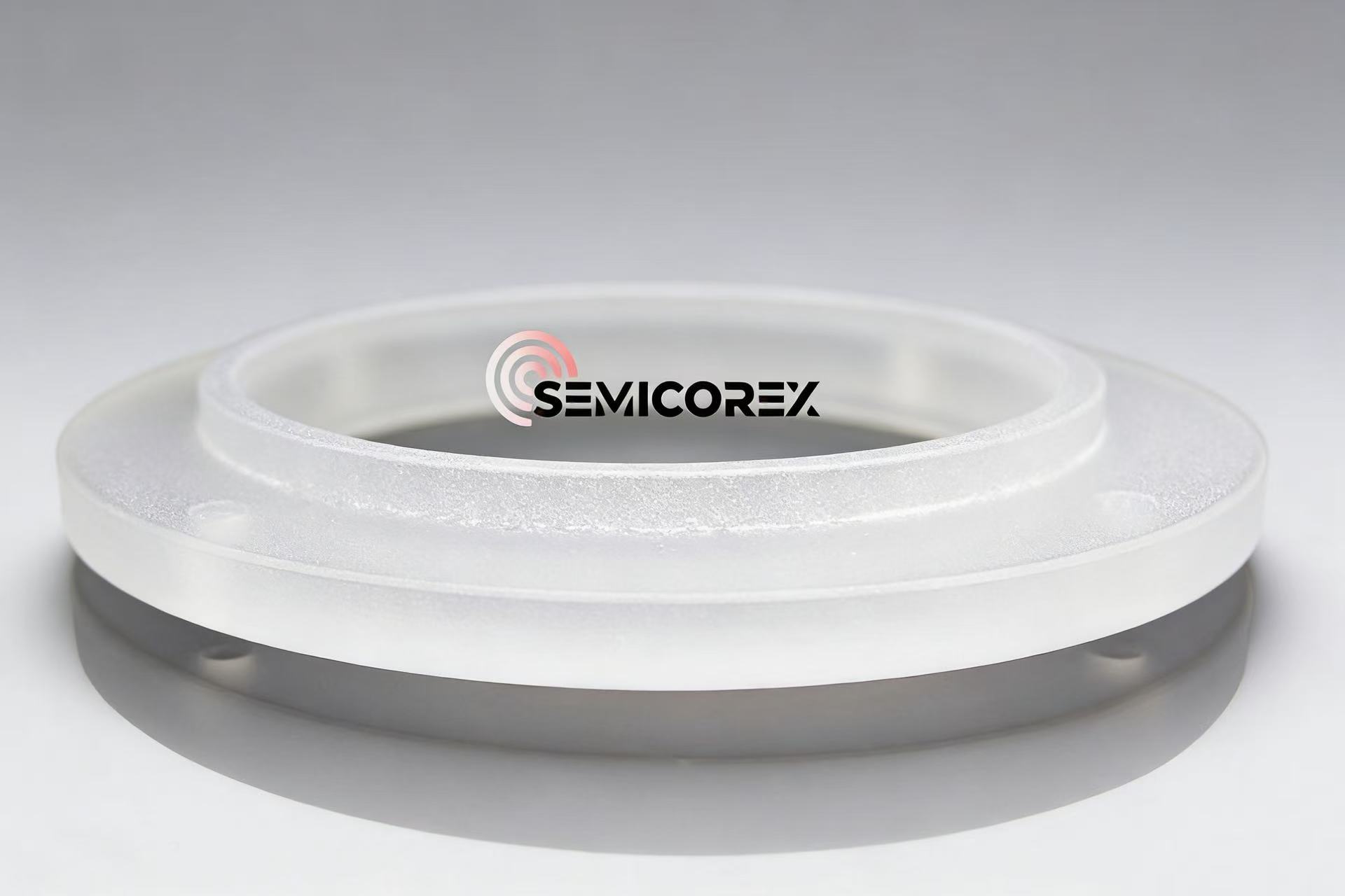 Kuwarts focus ringay espesyal na idinisenyo para sa mga proseso ng dry etching. Karaniwang inilalagay ang mga ito sa paligid ng mga wafer upang i-confine at i-homogenize ang plasma, na epektibong tinitiyak ang pagkakapareho ng rate ng etching at patterning sa wafer. Ang operating environment na ito ay nangangailangan ng quartz focus rings upang magkaroon ng malakas na resistensya sa plasma corrosion, napakataas na dimensional accuracy, at makinis na surface finish para maiwasan ang mga abnormal na discharges o particle generation.