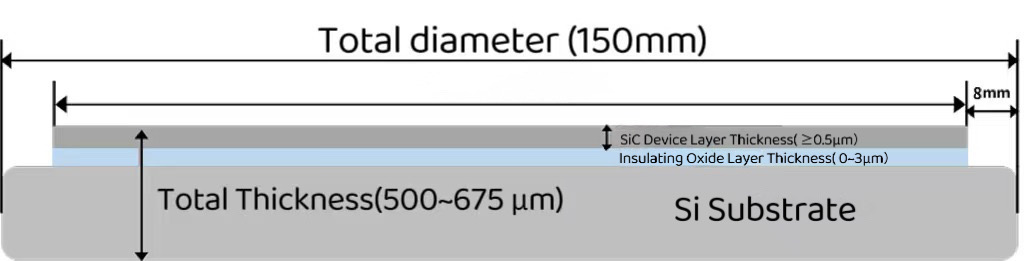 Matatagpuan sa pagitan ng silikon na substrate at ang layer ng aparato ng SIC, ang insulating oxide layer ay ang gitnang layer ng Sicoi wafer. Sa pamamagitan ng paghiwalayin ang mga kasalukuyang landas sa pagitan ng itaas at mas mababang mga layer, ang insulating oxide layer ay epektibong nagpapababa sa panganib ng mga maikling circuit at ginagarantiyahan ang matatag na pagganap ng elektrikal ng mga aparato ng semiconductor. Dahil sa mababang katangian ng pagsipsip, maaari itong makabuluhang bawasan ang optical na pagkalat at pagbutihin ang kahusayan ng paghahatid ng signal ng semiconductor.